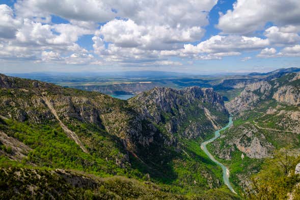 After this, we'll drive along the idyllic roads of the Verdon canyon, which offer unique views of the surrounding landscapes. Afterward, we'll make a stop at the Galetas Bridge, in the village of Sainte-Croix-du-Verdon and the largest lake in the natural park, Lake Sainte-Croix, where we can stroll along the shore or take a refreshing dip in the turquoise waters.