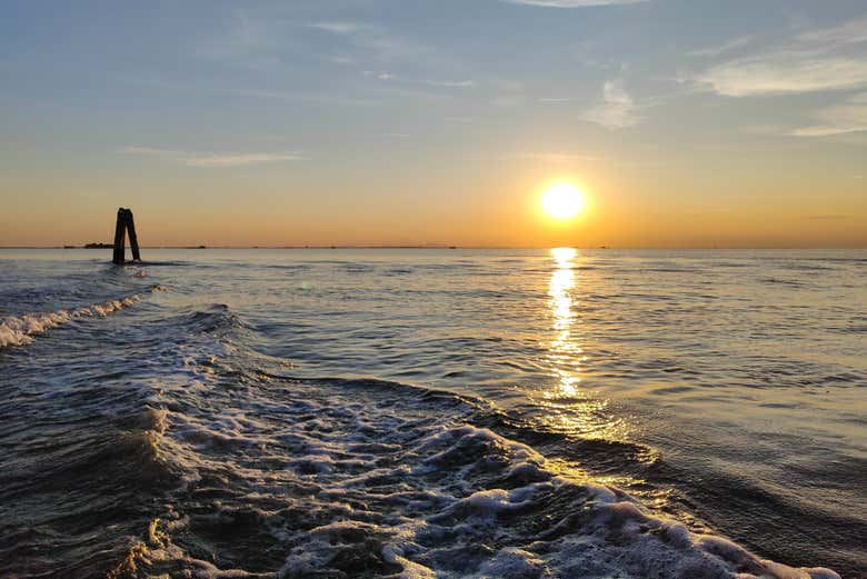 While the sun begins to hide behind the horizon, we'll leave Chioggia behind and set sail close to Ca' Roman, a peaceful area of the Venetian Lagoon home to many bird species. At this fascinating natural habitat, we'll let ourselves become spellbound by the sunset's magical colours as we admire the lagoon's landscape.