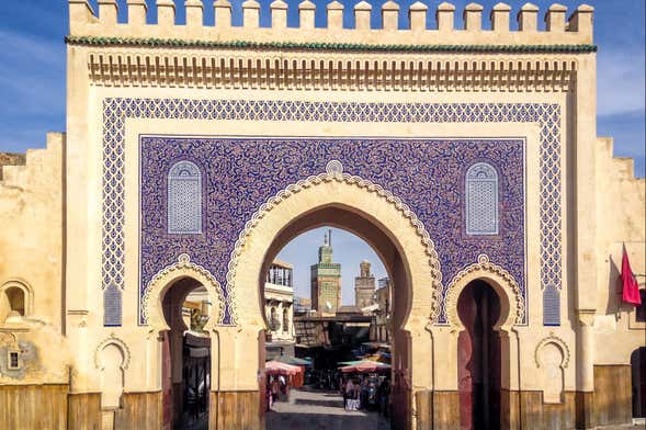 We'll start the tour by talking about the Bab Bou Jeloud, also known as the Blue Gate, the main entrance of the Medina of Fez. We'll walk to the Al-Attarine Madrasa, one of the main Koranic schools where students used to reside. Nearby, we'll find the Bou Inania Madrasa and visit its interior, which is covered with stucco walls, wood, and tiles with geometric motifs—an architectural jewel!