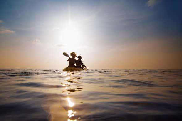 And we'll hop out of the kayaks to try our hand at snorkeling in the crystal clear waters, experiencing firsthand the diverse marine life of the natural reserve to the north of Menorca.