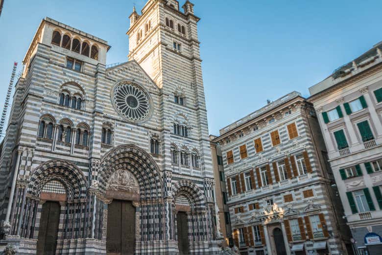 After admiring the mix between the Romanesque and Gothic architecture on the outside of the church, we'll walk to the Ducal Palace of Genoa. Do you know which illustrious personalities lived there? After learning about the history of this stunning location, we'll make our way to the nearby Piazza Raffaele de Ferrari.