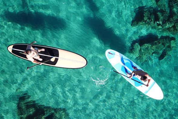 We'll meet up at the scheduled time on Jávea Beach, at the top of Avenida del Mediterráneo, 5. There, we'll give you the board, the paddle, and the life jacket and we'll briefly explain what the route will consist of. Then it's time to hit the water!