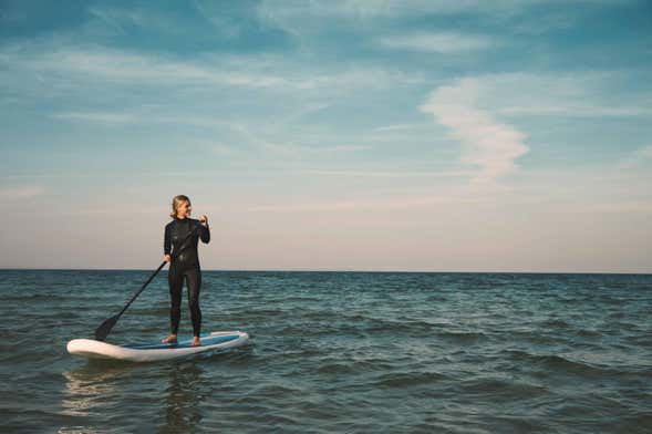 We'll meet at the scheduled time on Bañutegi street. Once we've all introduced ourselves, we'll hand over the paddle boards and oars and head to the beach to start our paddle surfing activity in Mundaka.