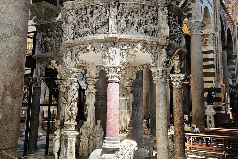 The skip-the-line ticket to the tower also allows you to freely visit the Pisa Cathedral. If its outward appearance is impressive for its brilliant white and grey, inside, you will find an incredible artistic treasure. It is especially recommended to pay close attention to the Caryatid sculptures, each one representing a different virtue, the pulpit, the high altar, and the breathtaking mosaic in the apse.