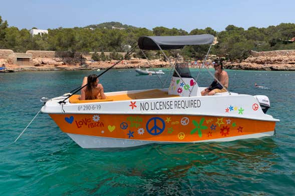 The best views of Ibiza come from the sea, and if you've never had the chance to sail with the wind in your hair, you can rent a boat that doesn't need a licence, and enjoy either half or a full day on the waters of the Mediterranean.