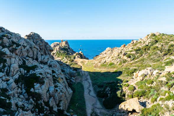 We'll walk along the circular trail at the summit of Capo Testa, among the imposing granite crags. As we keep walking, we'll discover caves and some small coves with beautiful turquoise blue waters.
