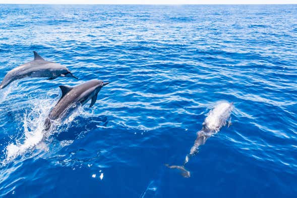 Next, we'll sail through the Atlantic so we can spot some dolphins and whales in their natural habitats. If we're lucky, we'll see dolphins, come across a pod of pilot whales and perhaps even see whales expelling humid air from their blowholes when they come up to the surface.