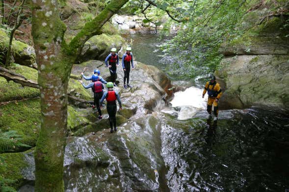 Agarrados a la cuerda y con el casco puesto, bajaremos por las rocas para llegar a una piscina natural. Dispondremos de unos diez minutos para nadar en sus aguas antes de retomar el camino hasta la siguiente montaña. ¡Podremos saltar a 6 metros de altura!
