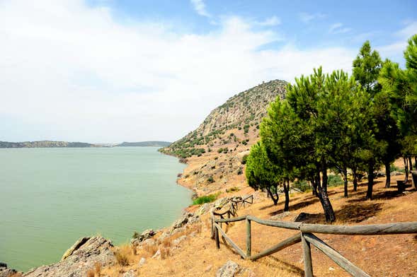 Navegaréis durante dos horas por parte de las 5144 hectáreas de esta laguna del río Matachel, afluente del Guadiana. Es probable que veamos a los pescadores en las orillas en busca de carpas, black bass y lucios, muy abundantes en estas aguas. Además, contemplaréis la silueta del castillo medieval de Alange, que se alza en lo alto del cerro de la Culebra.