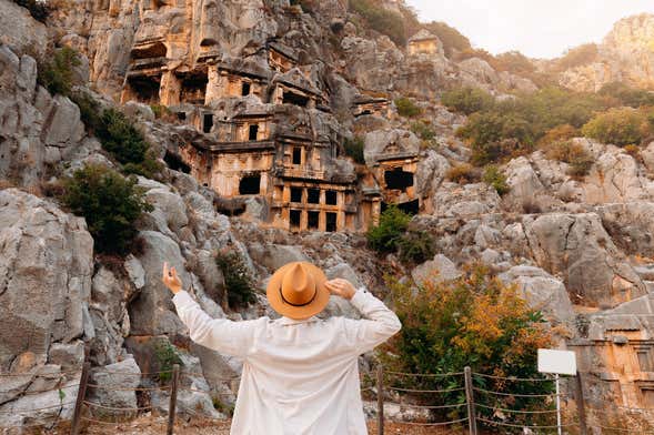 De nuevo en tierra firme, desde la ciudad de Demre, nos dirigiremos a la antigua ciudad de Mira para visitar el anfiteatro y las tumbas esculpidas en la roca. ¡Una imagen que se os quedará grabada en la retina!