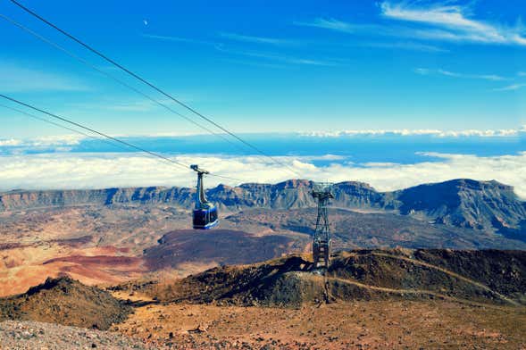 Llegaremos a la base del teleférico y… ¡que empiece la aventura! Viajaremos a bordo de las cabinas ascendiendo hasta 3555 metros de altura hasta llegar al mirador de la Rambleta. Desde este punto obtendremos las mejores vistas de las Cañadas del Teide, una imagen de postal.