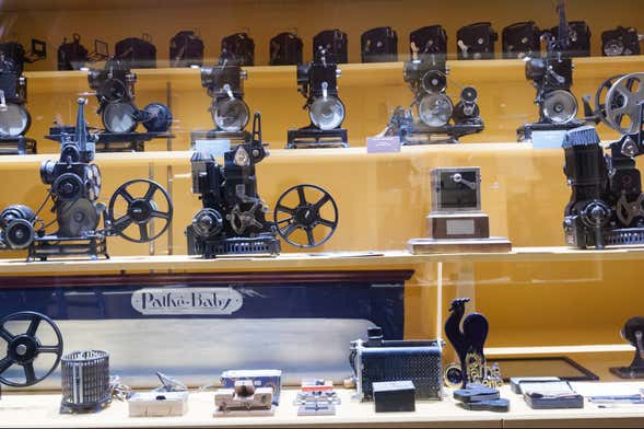 Podréis conocer los hitos de la historia del celuloide, como la invención del cinematógrafo por los hermanos Lumière en 1895, y ver aparatos cinematográficos de distintas épocas que muestran la evolución del Séptimo Arte. ¡El museo expone casi 8000 objetos!