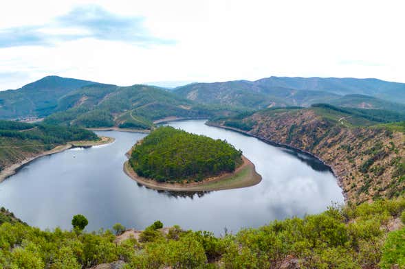 Desde el barco podremos divisar el pueblo medieval de Granadilla con su emblemático castillo, los bonitos valles de Las Hurdes y bordearemos también el Parque Natural de Las Batuecas y Sierra de Francia, perteneciente a la provincia de Salamanca. ¡Estamos en la frontera entre Extremadura y Castilla y León!