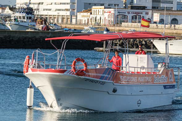 Una vez hayamos zarpado empezaremos a divisar Isla Canela. Contemplaremos la desembocadura de la ría y nos adentraremos hacia el puerto pesquero de Isla Cristina. Navegaremos por sus aguas y observaremos a los pescadores y mariscadores de los viveros de almejas mientras aprendemos sobre la labor que llevan a cabo en este lugar.