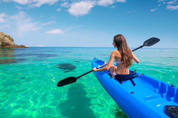 Disfrutad de una de las actividades más divertidas de la Costa Blanca con este tour en kayak por Cala Tangó desde Jávea. Además, practicaréis snorkel en una cueva marina. ¡Os encantará!