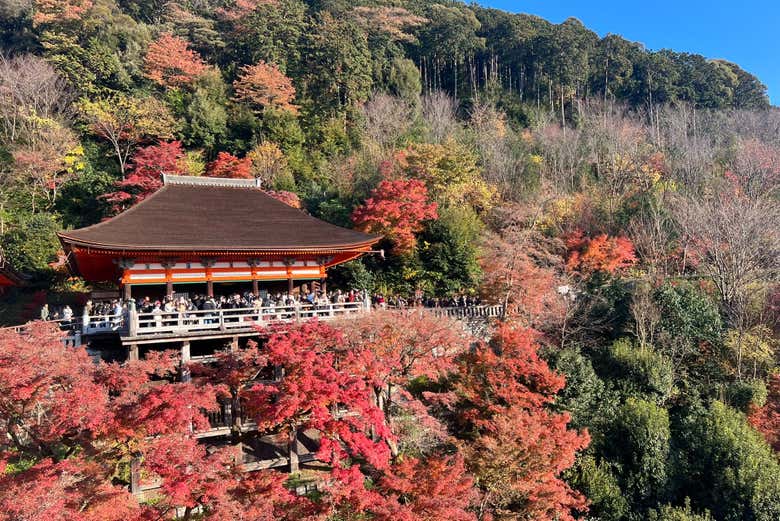 Después, visitaremos el Templo Kiyomizudera, uno de los más conocidos de Kioto y declarado Patrimonio Mundial por la Unesco. Fundado en el año 778, este templo ofrece unas vistas panorámicas desde su icónica plataforma de madera, suspendida sobre un acantilado. ¡No olvidéis vuestra cámara!