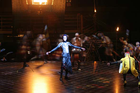 Solo un ejemplo más de la grandiosidad de este espectáculo: el barco de la escena de la tormenta pesa 500 kilogramos y es completamente manipulado en escena por los artistas.