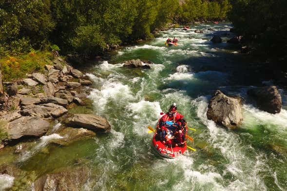 Tras esta breve formación, comenzaremos el descenso en rafting por el río Noguera Pallaresa. En esta ruta fluvial de dos horas, cubriremos los 14 kilómetros que separan Llavorsí de Rialp: otra preciosa localidad del Pirineo leridano. Se trata de un tramo con numerosas zonas de aguas bravas, siendo uno de los lugares más destacados para la práctica del rafting en el sur de Europa.