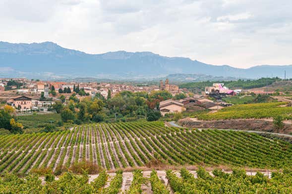 Además, nos acercaremos a visitar el exterior de las bodegas Ysios. Seguro que os sorprenderá su edificio principal, diseñado por Santiago Calatrava, casi tanto como el de las famosas bodegas Marqués de Riscal. Situadas en la localidad de Elciego, estas últimas son obra del célebre arquitecto Frank Gehry y todo un emblema de la Rioja Alavesa.