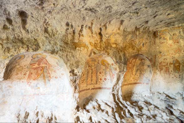 Una vez listos, dispondréis de media hora para recorrer por libre este templo. Vuestra audioguía en español os hará fijaros en los detalles más llamativos de la iglesia. Los frescos pintados en sus paredes de piedra datan del siglo IX y reproducen varias escenas del Génesis.