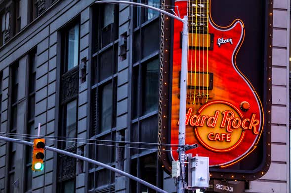 El Hard Rock Cafe Nueva York es uno de los restaurantes más famosos de la ciudad que nunca duerme. Desde la emblemática marquesina del edificio en el que se ubica hasta las reliquias del mundo del rock que guarda, en este local comeréis o cenaréis como auténticas estrellas de la música.