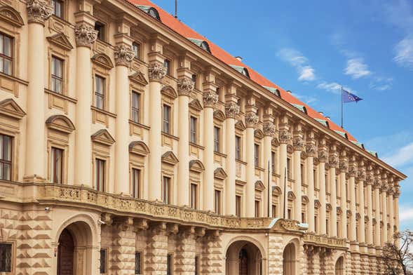 Nos acercaremos hasta el Palacio Černin, actual Ministerio de Asuntos Exteriores, donde descubriremos quiénes fueron Jan Masaryk y Edvard Beneš. Junto a la estatua de este segundo personaje se encuentra la iglesia de Nuestra Señora de los Ángeles, cuya fachada ha quedado marcada para siempre por impactos de bala.