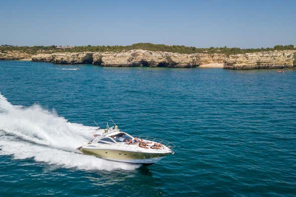 À bord du yacht, vous découvrirez la puissance et le caractère spectaculaire d'un bateau unique au Portugal. Pendant le trajet, vous pourrez admirer les incroyables formations rocheuses de la région, prendre un bain de soleil et vous rafraîchir lors d'une baignade ou d'une petite séance de snorkeling.