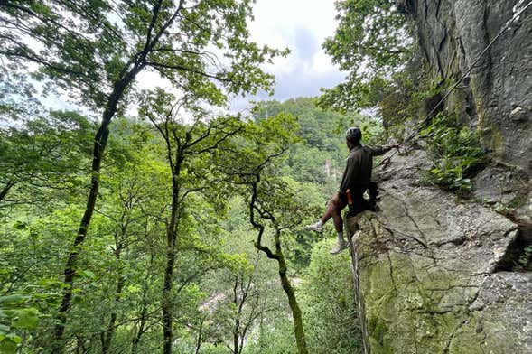 En chemin, vous traverserez cinq parois verticales que vous escaladerez grâce à des agrafes, des prises, des échelles et des rochers qui vous aideront à atteindre le sommet. Vous ferez également des arrêts pour observer de plus près la vallée de Leitzaran. Vous allez adorer !