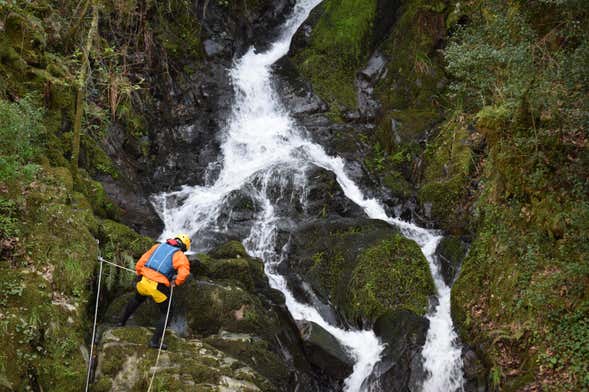 Vous marcherez pendant 30 minutes jusqu'à ce que vous atteigniez la rive de ce fleuve qui traverse le Géoparc d'Arouca. Une fois sur place, nous vous remettrons l'équipement de canyoning et nous vous expliquerons brièvement les règles de sécurité de base à respecter pour effectuer le parcours. Êtes-vous prêt ?