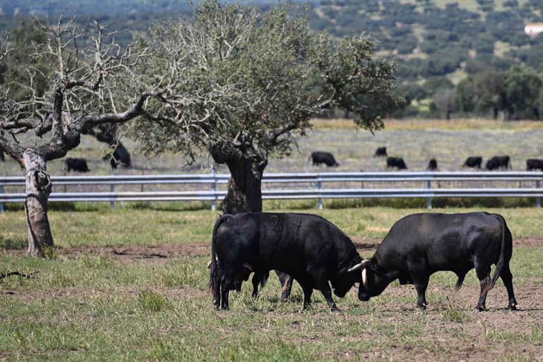 Vous pénétrerez en plein cœur de l'habitat naturel des taureaux d'Estrémadure. Vous les verrez interagir entre eux et vous apprendrez tout ce qu'il y a à savoir sur leur élevage et d'autres curiosités. Par exemple, saviez-vous que le taureau arrache l'écorce des arbres pour marquer son territoire ? Et connaissez-vous le mythe de la couleur rouge ? Vous le découvrirez !