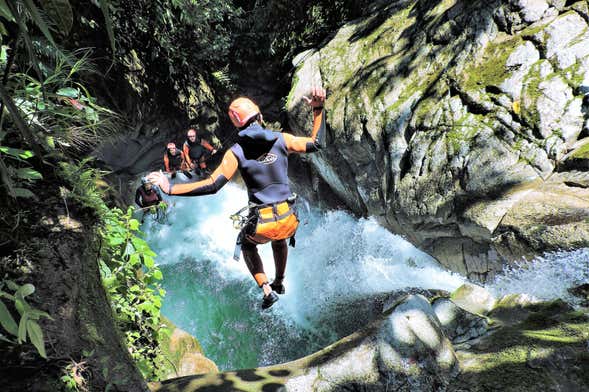 Après un trajet de 45 minutes, vous arriverez à destination. Une fois sur place, vous entrerez dans un canyon avec cinq chutes d'eau de 3 à 20 mètres de haut. Lors de ce parcours, vous devrez glisser sur des tyroliennes, descendre en rappel, nager, plonger et, surtout, sauter !