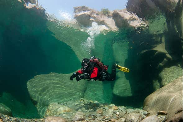 Après vous être préparés avec vos combinaisons, bouteilles, lunettes, palmes et autres équipements de plongée, vous plongerez dans les eaux du lac Moreno. Ce lac glaciaire, situé dans le Circuito Chico de Bariloche, est l'un des principaux sanctuaires de plongée de la province argentine de Río Negro.