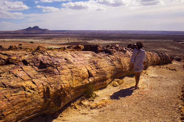 De là, vous poursuivrez la route vers le Bois Pétrifié, où vous verrez de nombreuses fougères ainsi que des troncs fossilisés depuis des milliers d'années. Qu'est-ce qui a provoqué ce phénomène naturel ? Le guide répondra à cette question pendant que vous goûterez des produits locaux.
