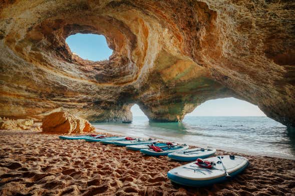 Vous naviguerez jusqu’à différents lieux de la côte de l’Algarve. Le moment le plus spécial arrivera quand vous vous aventurerez dans les grottes marines de Benagil, situées sous les falaises du même nom. Beaucoup de ces grottes sont accessibles seulement par la mer. Tout ça en gardant l’équilibre !