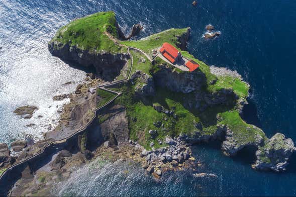 Pendant la traversée, vous contemplerez depuis le bateau les falaises colossales du cap Machichaco, couronnées par un phare de 122 mètres de haut. Vous passerez également par la Punta Ermuak et le rocher d'Aquech, un promontoire de trois hectares où vit le cormoran.