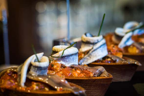 Lors de cet atelier de pintxos à Bilbao, vous apprendrez à préparer de délicieuses tapas à l'aide d'une grande variété de techniques, des plus traditionnelles aux plus innovantes, comme la cuisine moléculaire. Vous vivrez une expérience gastronomique inouïe et aurez l'impression d'être de vrais chefs basques en manipulant les ingrédients pour créer d'authentiques merveilles culinaires.