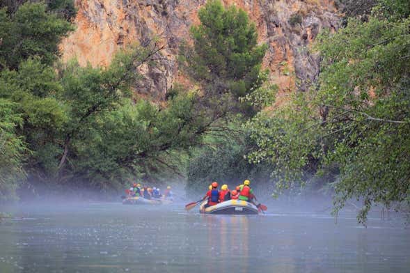 Vous descendrez un tronçon de rafting de niveau 1, adapté à tous. Il s'agit de l'un des points les plus spectaculaires de la rivière Segura, en particulier le segment qui traverse le canyon d'Almadenes. Saviez-vous que celui-ci a été classé zone naturelle protégée ? Pendant que vous pagayerez, nous vous raconterons de nombreuses curiosités sur la biodiversité de cet endroit et sur la forêt qui borde la rivière.