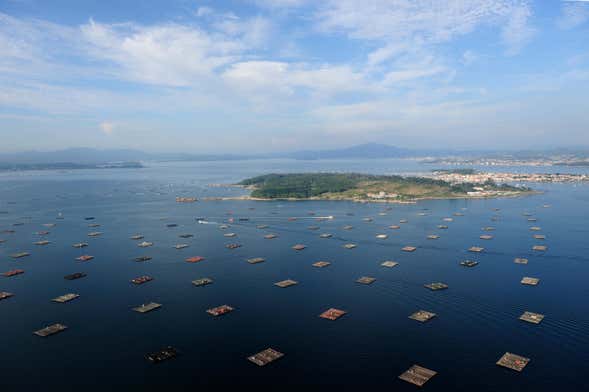 Vous vous approcherez des bateas, des plates-formes en bois placées dans la mer pour cultiver les moules. Vous pourrez y observer le processus d'élevage des moules, une authentique tradition galicienne !