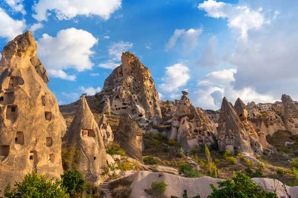 Vous vous dirigerez ensuite vers la ville d'Uchisar pour visiter le château d'Uchisar, la plus grande et la plus belle cheminée de fées de la région, qui offre une vue panoramique sur l'ensemble de la Cappadoce. Saviez-vous que ce château a été utilisé comme forteresse par les armées romaines et byzantines ? À proximité, vous verrez également la vallée des Pigeons. Connaissez-vous l'origine de son nom ? Vous le découvrirez au cours de la visite !
