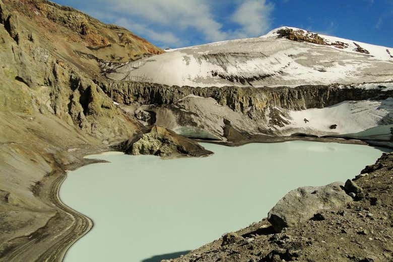Les pics qui entourent le sommet et l'odeur de soufre seront le signe que vous atteignez le lac du cratère. Vous disposerez d'une demi-heure de temps libre pour vous reposer et profiter d'une boisson chaude.