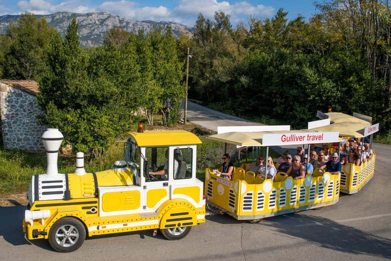 Vous prendrez ensuite un joli petit train qui vous emmènera à travers les plus beaux endroits de la région, et notamment le village de Ljuta. Sur place, vous pourrez visiter un ancien moulin à eau et découvrir comment la farine était produite antan. Nous vous expliquerons aussi l'importance de la production de laine en Croatie. Passionnant !