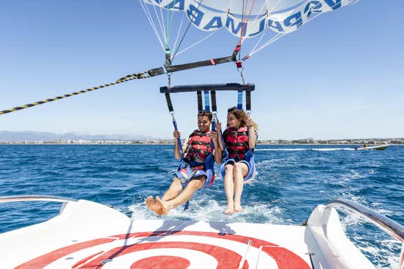 La vitesse du bateau et le vent feront s'élever le parachute, ce qui vous permettra de voler jusqu'à 50 mètres de hauteur. Vous vivrez des sensations fortes en flottant dans les airs tout en admirant les incroyables côtes de Majorque.