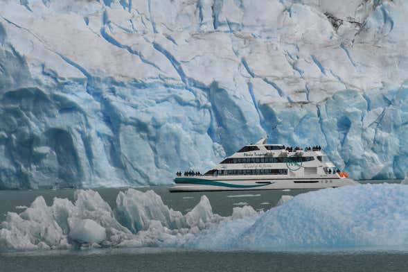 Dans la cabine premium, située dans la partie supérieure du bateau, vous découvrirez les charmes du parc national de Los Glaciares. Tout d'abord, vous vous arrêterez devant le glacier Seco, qui est en recul et où l'on peut voir une bande de terre érodée par le temps. Vous continuerez la croisière pour admirer les glaciers Heim et Spegazzini. Saviez-vous que ce dernier mesure 135 mètres de haut !