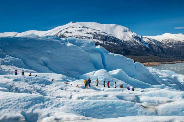 Lorsque nous atteindrons le bord du glacier, les guides formeront plusieurs groupes de vingt personnes maximum chacun et il sera temps de mettre les crampons. Une fois sur la glace, après une brève discussion, vous commencerez la randonnée. Au cours de cette visite d'une heure et demie, vous apprécierez une grande variété de formations typiques d'un glacier telles que crevasses, gouffres, séracs, lagunes, etc. À la fin de la randonnée sur la glace, nous retournerons au refuge par une passerelle qui traverse l'exubérante forêt andine de Patagonie.