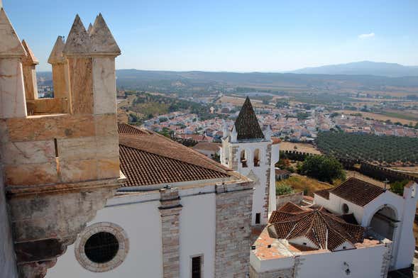 Vous pourrez voir l'extérieur du château médiéval d'Estremoz alors que nous vous parlerons d'histoires de rois et de nobles qui y ont vécu. Regardez le donjon : une imposante construction en marbre de 27 mètres de haut.