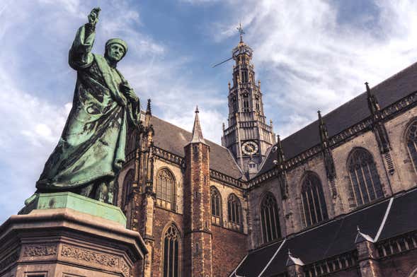 Depuis la Grote Markt, la place principale de Haarlem, vous admirerez la façade de la cathédrale Saint-Bavon, l'un des joyaux de l'architecture gothique néerlandaise. À côté du temple, vous verrez une sculpture en l'honneur de Laurens Janszoon Coster, l'un des pères de l'imprimerie.