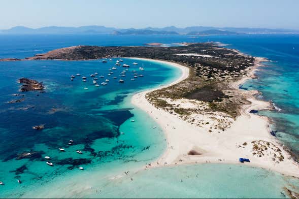 Vous pourrez profiter de votre journée à Formentera comme bon vous semble. L'île possède 69 km de côtes avec des falaises, des criques et des plages d'une beauté incroyable. Nous vous recommandons les plages de Cala Saona, Ses Illetes ou Els Arenals et de monter au phare de la Mola, construit sur une falaise de 120 m de haut.