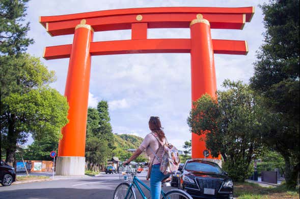 De ce point, vous vous dirigerez vers le Ginkaku-ji, ou Pavillon d'Argent, un temple impressionnant aux jardins paisibles. Ensuite, vous mettrez le cap sur le sanctuaire de Shimogamo, l'un des plus anciens sanctuaires shintoïstes de Kyoto. Le dernier arrêt de votre balade à vélo dans Kyoto sera le Palais Impérial, l'ancienne résidence de la famille impériale du Japon. Quelles histoires se cachent derrière ses murs ? Vous les découvrirez !