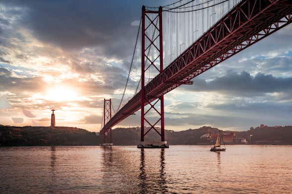 Pendant la croisière, vous parcourrez le Tage depuis le quartier de Belém jusqu'à l'Alfama, en profitant de la navigation et des meilleures vues sur la ville au moment du coucher du soleil. Vous traverserez le Pont du 25 Avril, passerez devant l'immense Christ Roi et verrez les principaux quartiers de Lisbonne depuis le fleuve.