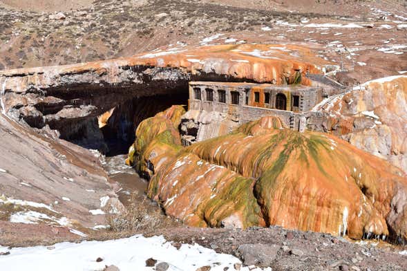Vous continuerez la route jusqu'au Puente del Inca, une passerelle naturelle sur la rivière Las Cuevas formée dans la roche. À proximité, vous trouverez un point de vue qui vous offrira une vue imprenable sur l'Aconcagua, le plus haut sommet d'Amérique avec une altitude de plus de 6 900 mètres.